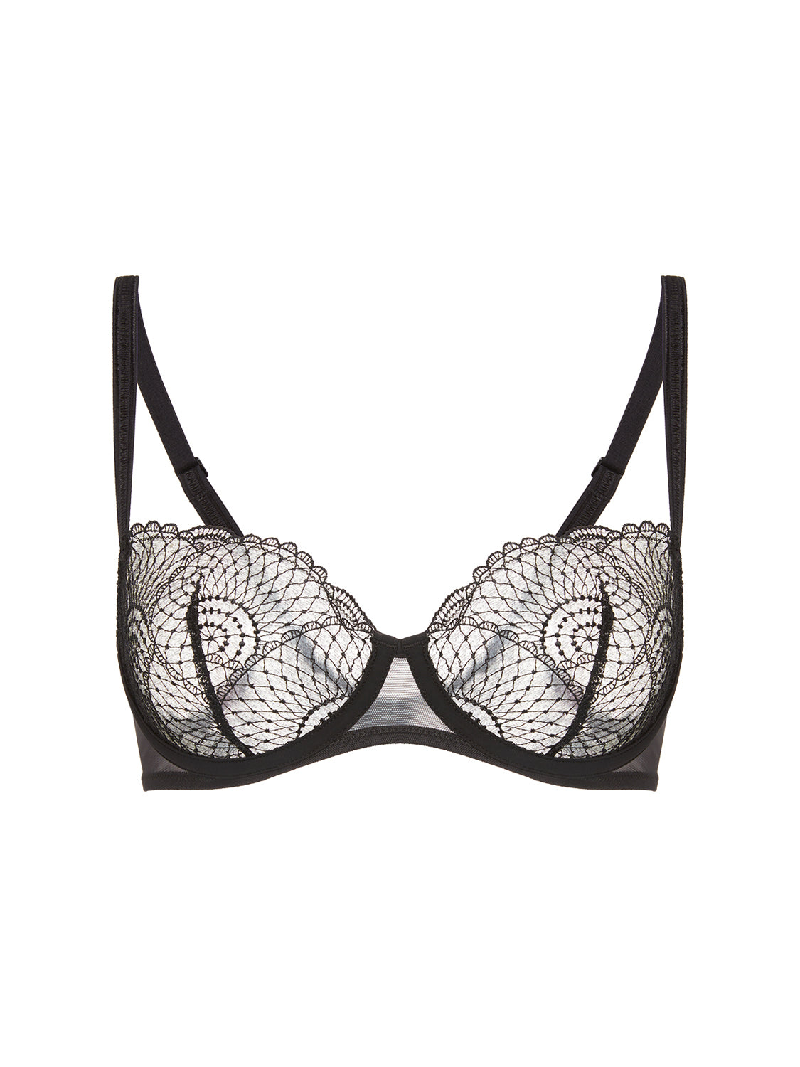 Fine embroidery and delicate voile for a subtle tatoo effect. Graphic and sophisticated. New radiant colours: Sorrento Yellow.