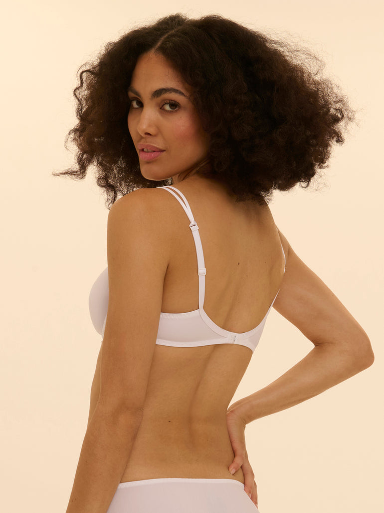 Spacer mesh bra embroidered with guipure lace and underwire.