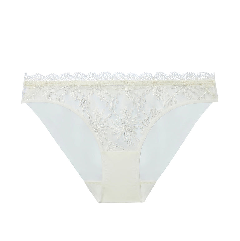 Embroidered mesh brief.