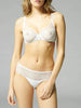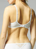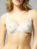 Underwired bra with embroidery and tulle made from recycled fibres.