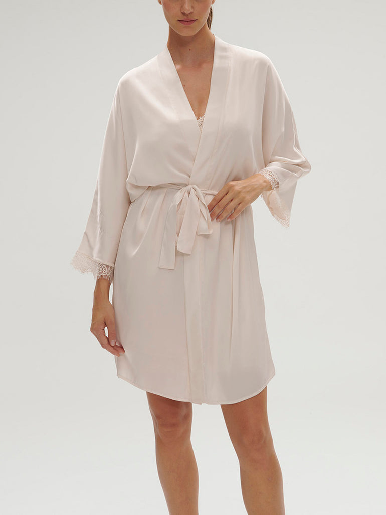 Kimono in satin and lace.