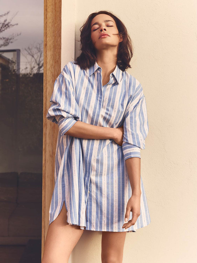 Long shirt in warp and weft fabric.