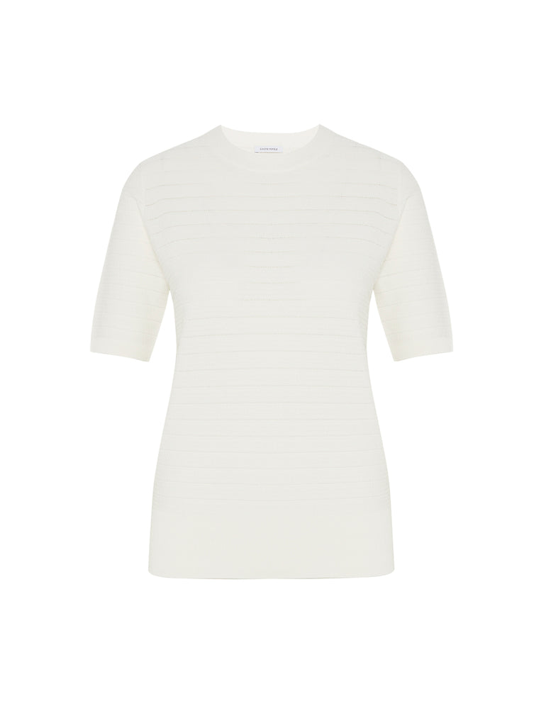 We ♥ : This piece is part of our SIMONE CARES programme, with a pointelle-style main material in LENZING™ ECOVERO™ viscose knit. LENZING™ ECOVERO™ fibres are derived from sustainable wood sources, certified with the European Ecolabel, from a production process that limits its CO2 emissions and water consumption.