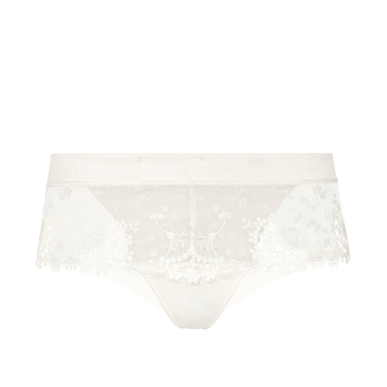 Embroidered, guipure lace and tulle shorty.