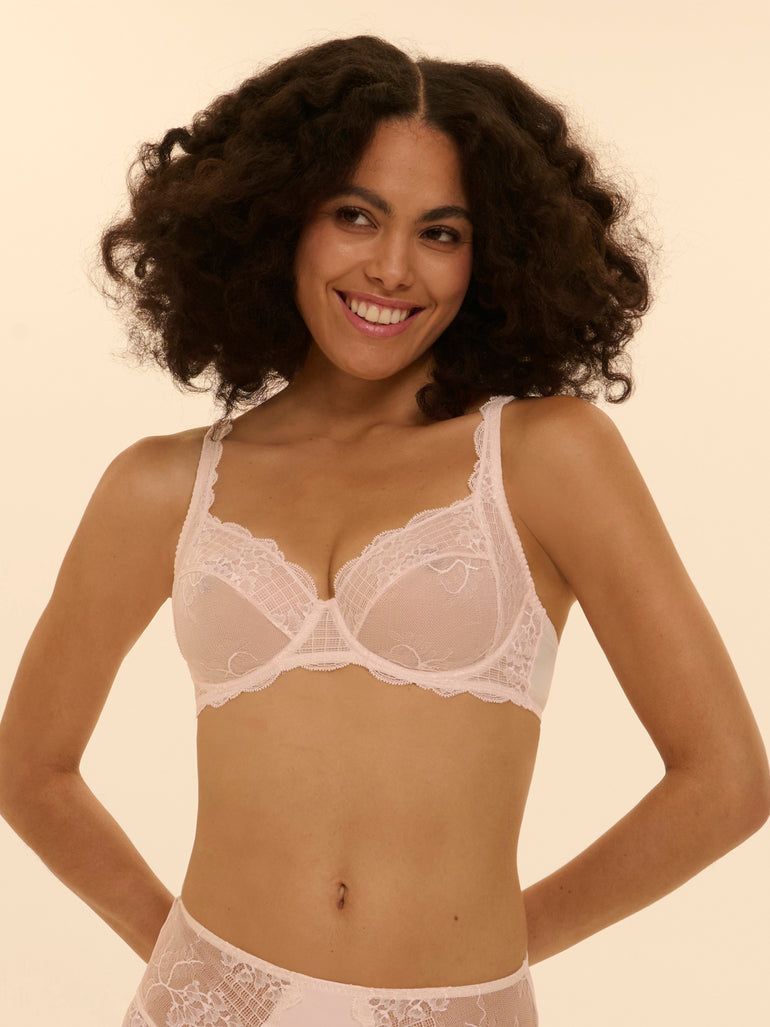 A refined lace where flowers are mixed with a modern graphic. Elegante et feminine.
