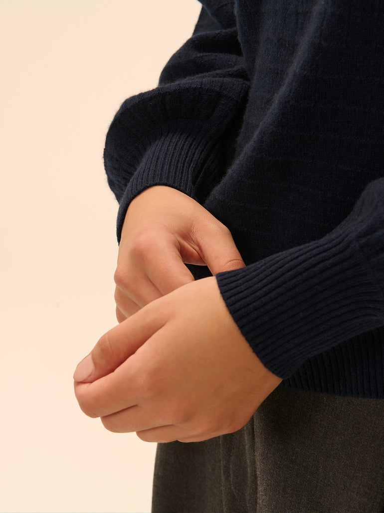 • Raglan sleeves, slightly puffed at the end with ribbed trims at wrists.